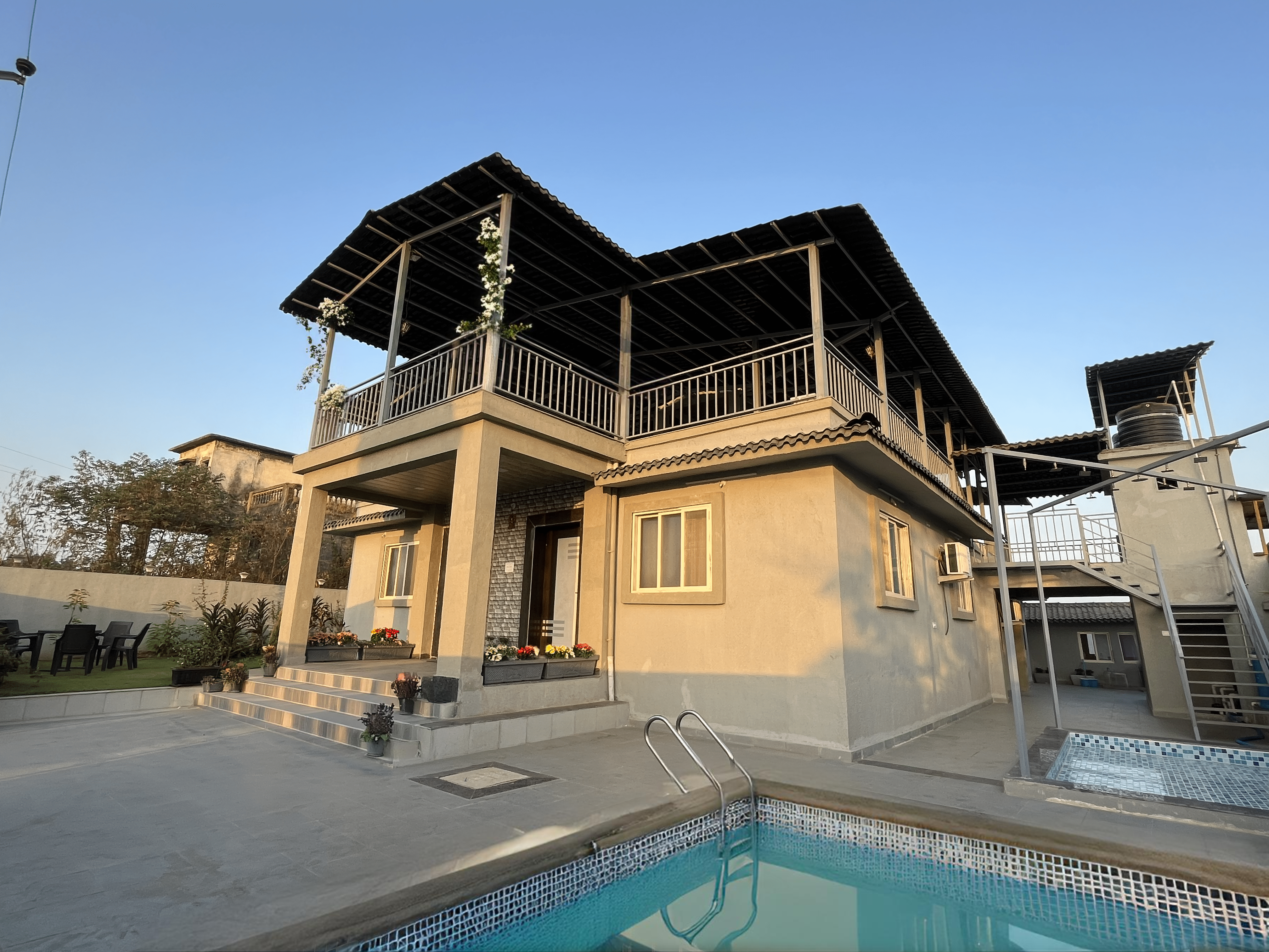 Imagine waking up to nature's symphony, surrounded by lush greenery. Our 8-bedroom haven offers modern comfort & tranquillity, perfect for family vacations, fun-filled getaways with friends, or team-building corporate retreats seeking a rejuvenating escape!